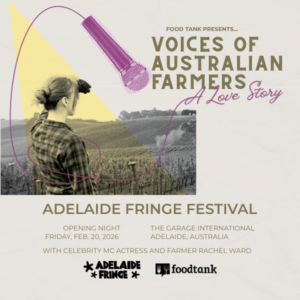 On Friday, February 20th, Food Tank will present “Voices of Australian Farmers: A Love Story" at Opening Night of Adelaide Fringe Festival 2026 with celebrity MC, actress and farmer Rachel Ward.